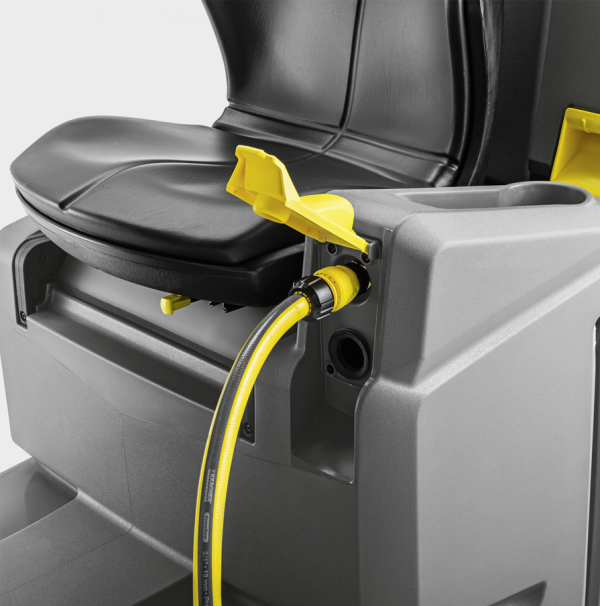 Entegre akü şarj cihazı sayesinde, akülü binek fırçalı kurutucu B 110 R, harici güç kaynaklarına erişimi olan farklı yerlerde kolayca şarj edilebilir. 2 disk fırçası, 75 santimetre çalışma genişliği ve özellikle ince ve kompakt tasarımı ile manevra kabiliyeti yüksek ve çevik makine, açılı alanların temizliği için de uygundur. EASY Operation düğmesi, renk kodlu kumanda elemanları ve 30 dilde tüm önemli ayarların girilebildiği renkli ekranı ile kullanımı son derece kolaydır. Bu özellik, her türlü kullanım hatasını ortadan kaldıran yenilikçi KIK tuş sistemi ile desteklenmektedir. 110 litrelik temiz su deposu Otomatik Doldurma fonksiyonu ile doldurulur, böylece zamandan tasarruf sağlanır ve hıza bağlı su dozajı, her zaman uyarlanabilen düşük tüketim sağlar. Kullanıcı ayrıca konforlu bir koltuk yükseklik ayarının yanı sıra pasif güvenliği artırmak için gündüz sürüş ışıklarından da yararlanır.