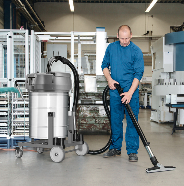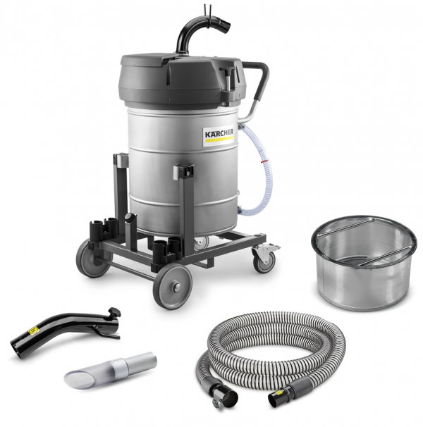 IVR-L 100/24-2 Tc Me kiti, ekstra sağlam tasarıma sahip kompakt bir endüstriyel süpürgedir. Tekerlekler ve güç kablosu yağ dayanıklıdır ve dayanıklı makinenin zorlu endüstriyel çalışma ortamlarında kullanılmak için mükemmel uygunluğunu vurgular. Ayrıca bir lift kamyonu da bağlamak mümkündür. Elektrikli süpürge, eğilebilir şasi olan 100 litrelik paslanmaz çelik bir kap sunar – büyük miktarda sıvı ve/veya ağırlıklı olarak tozsuz katı maddeler (örneğin swarf) süpürmek için mükemmeldir. Bunlar, isteğe bağlı kıvrım sepeti kullanılarak sıvılardan mükemmel şekilde ayrılabilir. Cam boncuk püskürtmeli paslanmaz çelik tasarımı, IVR-L 100/24-2 Tc Me endüstriyel vakum kitini çok yönlü kılıyor. Aşındırıcı maddeler de kolayca süpürülebilir. Emiş başındaki döndürülebilir hortum bağlantısı (360°) maksimum esneklik ve dalışsız süpürme garanti eder. Süpürme işlemi sırasında, mevcut dolum seviyesi her zaman tahliye hortumu aracılığıyla görünebilir. Boşaltma işlemi ya boşaltma hortumu ile ya da eğilme şasi ile yapılabilir; bu işlem ya drenaj borusu ya da eğilme şasi kullanılarak gerçekleştirilir.