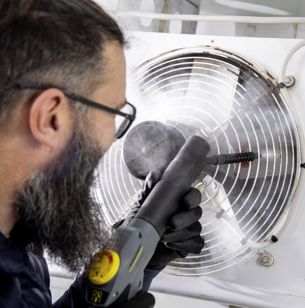 Çeşitli fonksiyonları kontrol etmek için özellikle kullanıcı dostu döner ve basınç anahtarı. Üç kademeli buhar akış kontrolü, soğuk ve sıcak su çalışması ve eş zamanlı vakumlama sunar. Zaman tasarrufu sağlar: Çalışma sırasında mod ayarlanabilir. Temizleme işlemini yarıda kesmeye gerek yoktur.